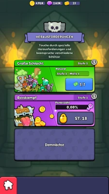 Errichten Sie Ihre letzte Bastion durch cleveres Kombinieren und Aufwerten. Verschmelzen Sie identische Verteidigungsgebäude zu mächtigeren Strukturen, um den Ansturm der Feinde zu zerschlagen. Jede Wahl zählt: Ob Sie sich auf schlagkräftige Einheiten, verheerende Türme oder trickreiche Fallen verlassen, Ihre taktische Ausrichtung entscheidet über Sieg oder Niederlage. Dies ist mehr als nur eine Verteidigung; es ist ein Puzzle, das sich in Echtzeit entfaltet, bei dem jede Platzierung und Fusion den Ausgang beeinflusst.