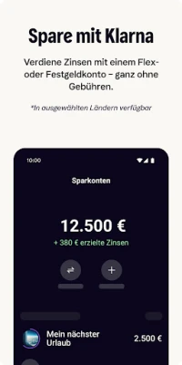 Doch Klarna ist mehr als nur eine Zahlungsmethode. Tauchen Sie ein in eine Welt voller finanzieller Vorteile, die Ihre Einkäufe noch lohnenswerter machen. Sichern Sie sich bis zu 10 % Cashback auf Ihre Einkäufe in Hunderten von teilnehmenden Shops, direkt über die Klarna App. Lassen Sie zudem Ihr Geld für sich arbeiten: Mit den attraktiven Flex- oder Festgeldkonten von Klarna profitieren Sie von Zinsen, ganz ohne monatliche Gebühren², und genießen die Sicherheit der schwedischen Einlagensicherung. Aktivieren Sie Ihr Klarna Guthaben, um Einkäufe flexibel zu bezahlen, blitzschnell Rückerstattungen zu erhalten und Ihr verdientes Cashback mühelos in verfügbares Geld umzuwandeln³.