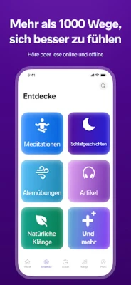 Meditopia unterscheidet sich: Mit über 1000 tiefgehenden Meditationen und Atemübungen bietet die App mehr als nur kurzfristige Lösungen für Schlaf, Balance und Stressabbau. Meditopia geht den Kern menschlicher Herausforderungen an, um Sie nachhaltig in Ihrem Alltag zu unterstützen, unabhängig von Alter und Erfahrung.