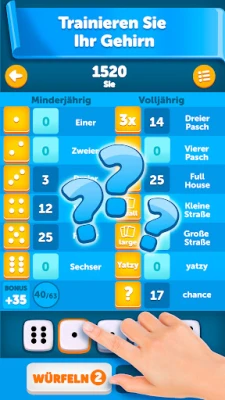 Entdecken Sie dieses zeitlose Würfelspiel, das weltweit unter Namen wie Yatzy, Yacht und Kismet geliebt wird. Es ist bekannt für seine einfache Zugänglichkeit und seinen schnellen Einstieg, der sofortigen Spielspaß garantiert. Ideal für unterhaltsame Momente und spannende Herausforderungen.