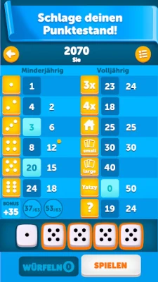 Egal, ob Sie Ihre persönlichen Fertigkeiten perfektionieren oder sich in direkte Duelle stürzen möchten, Yatzy Classic bietet Ihnen vielfältige Spielmöglichkeiten. Im Solo-Modus können Sie ungestört trainieren, Ihre Strategien verfeinern und Ihre eigenen Bestleistungen immer wieder übertreffen. Für den direkten Nervenkitzel fordern Sie online einen zufälligen Gegner heraus und beweisen Ihr Können im weltweiten Wettbewerb – und freuen Sie sich schon jetzt auf zukünftige Updates, die noch mehr spannende Funktionen und Spielmodi bereithalten! Oder genießen Sie ein gemütliches, aber herausforderndes Duell gegen einen Freund, indem Sie abwechselnd am selben Gerät spielen.